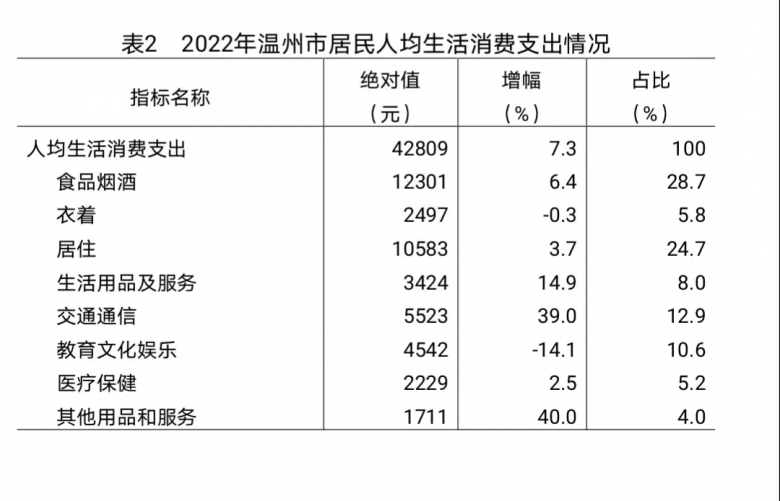 温都讯 2022年你存了多少钱?温州人的平均数是:2万元。2月1日,记者从国家统计局温州调查队获悉,2022年温州全体居民人均可支配收入63033元,人均消费支出42809元,由此相减可得,人均结余20224元。