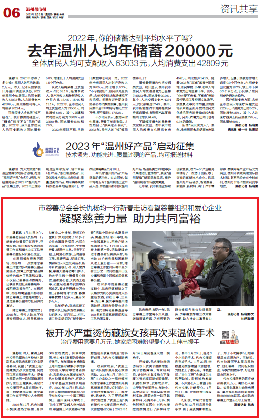 温州都市报2月2日06版报道图 2016年12月,代吉拉增不慎跌进热水锅里,身体60%左右烫伤。因家中贫困,无力支付高额的烫伤治疗费用。年年捐款支援青海玉树州拉吾尕藏族小学的东北师范大学附中志愿者协会,发动校友志愿者每年为代吉拉增捐款治疗,还设立了专项基金支持她长期治疗。2020年12月8日,东北师范大学附中原党委书记张子彬向校友——中国工程院院士、温州医科大学校长、“肤生工程”发起人李校堃求助,希望院士团队能够用“难愈性创面修复与再生”的科研成果,为代吉拉增解除病痛。 收到求助后,“肤生工程”团队随即展开爱心救助活动。2021年1月,“肤生工程”主办单位之一温州都市报陈忠慈善工作室立即开展慈善筹款活动,短时间内为代吉拉增筹得3.5万元医疗费、路费等。为了更好地帮助代吉拉增,“肤生工程”决定接代吉拉增来温州治疗。代吉拉增和父亲于2022年1月14日来到温医大附一院治疗。 经检查,代吉增拉患烧伤后双下肢关节疤痕增生、关节功能障碍。专家研判后,计划先对其实施右下肢膝关节疤痕切除创面修复、肌腱松解术、皮瓣成形术。由于孩子创面巨大、年龄小,手术风险大,为确保手术顺利实施,温医大附一院召集麻醉科、心胸外科、儿科、烧伤科等科室医生,对代吉增拉的病情进行了多学科讨论。去年1月20日,经过3个小时的手术,代吉拉增顺利完成手术。1月22日,李校堃到病房看望代吉拉增,为她送上了慰问品。李校堃说,“肤生工程”会继续关注和帮助她,直到她治愈康复。不少爱心人士看望了给代吉拉增,并献爱心。1月28日下午,代吉拉增出院返回青海。 扎阳说,本来代吉拉增应于去年12月初来温州做手术,由于受疫情影响推迟了。为了不耽搁学习,她希望早点来温治疗。王健说,代吉拉增可于本周来温治疗,他们将第一时间组织检查,尽快为她做手术,好让她早点回家上学。 代吉拉增所需的医疗费和路费几万元,请好心人帮助。如果你愿意为她伸出援手,请与温州都市报新闻热线88868886联系,或在陈忠慈善工作室公众号上留言。 温都记者 陈忠 责编 陈东升 审核 周俊朗