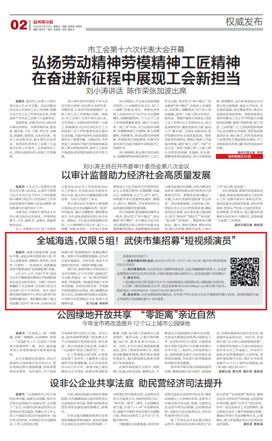 3月3日~5日,中国(平阳)武状元文化节暨坡南市集将在平阳昆阳坡南历史文化街区举办。为期三天的市集囊括了文化演绎、文化展示和互动活动等110个子项内容。其中,温州都市报影视制作中心将在古街举行短视频拍摄活动。该拍摄活动除了通过现场赢“忠信币”参与外,还将向社会招募5组“短视频演员”免费拍摄名额。剧组不仅免费提供服装,还为你打造专属造型。先到先得,快来千年坡南古街共赴一场即兴穿越之旅。