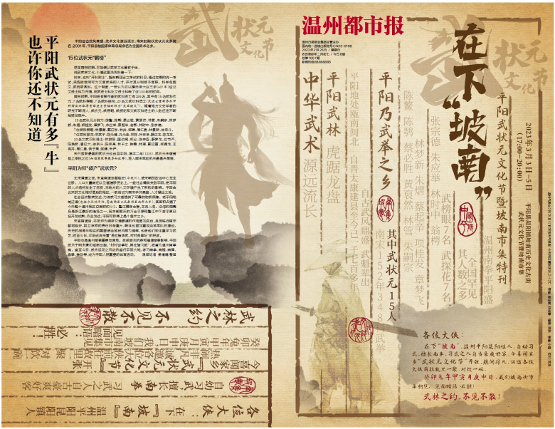 南宋时期,平阳县有案可查的武科进士有299名,其中有15名武科状元、7名武科榜眼、7名武科探花、20名文武双科进士(武进士重新参加甲科考试而取得贡举进士资格的称为“武举换文”)。随着地方文史学者的研究不断深入,武状元、武榜眼、武探花和文武双科进士的人数还在不断地被发现中。