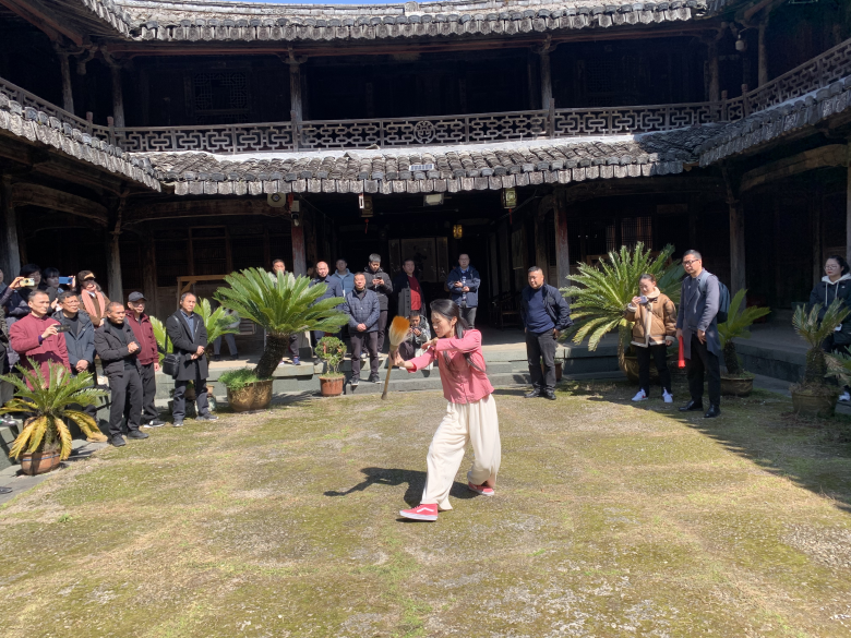 温州市人大常委会副主任、温州市太极拳运动协会名誉会长张洪国一行,实地调研了文成县公阳乡东方太极小镇建设情况以及叶大密太极文创院、叶大密纪念馆等。活动现场,叶大密儿子叶绍东、全国太极拳冠军吴蔓以及叶氏太极拳传人等表演了太极拳、剑,精彩地展示获得阵阵掌声。