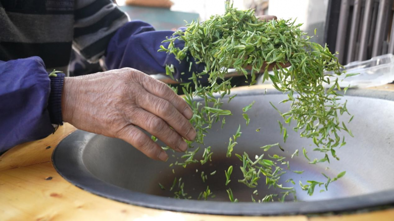 限于产量,手工茶的价格自然比同等茶青品质的机器制茶要高。叶新标称,今年村里炒茶师父手工制作的干茶,售价几乎没有低于4000元/公斤。