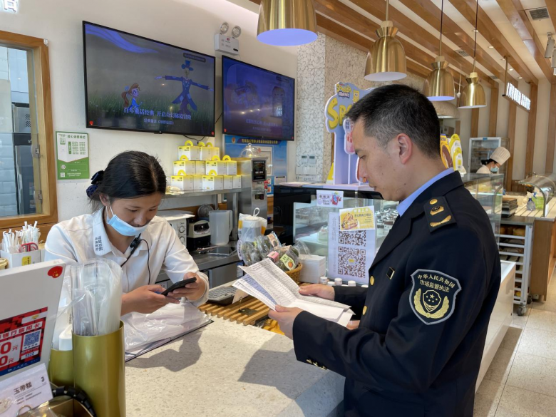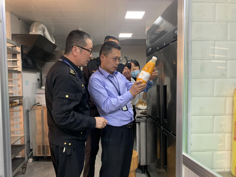 执法人员对辖区内面包店依法进行检查,仔细查看营业执照、食品经营许可证、从业人员健康证明以及加工储存场所环境卫生等基本情况,重点检查统一生产配送产品以及现烤产品的包装规范、生产日期、感官状态,有无销售超期变质产品的情况。同时,仔细询问从业人员对于未售完面包的处理方式以及是否存在运货车辆同时运输待售产品与超期变质处理品的违规行为。并告诫从业人员落实相关责任,杜绝违法违规生产销售行为。本次检查出动执法人员50人次,全覆盖检查辖区内共16家“可斯贝莉”面包店及报道中所涉及的企业成品仓库,未发现过期产品,检查总体情况良好,无明显违法点。