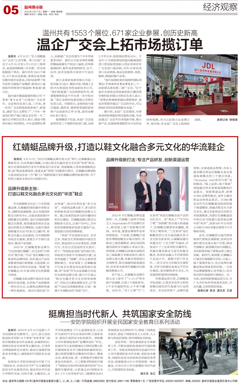 创意设计学院在校园内开展了以“国家安全、你我共同守护”为主题的国防安全作品展览活动,展品均由学生设计并制作完成,内容丰富、主题突出,从不同角度阐述了什么是国家安全,以及作为新时代学生应该如何捍卫国家安全、提高自身的安全防范意识。该校警卫合作联络处组织“蓝鹰特巡队”学生,赴温州市公安局鹿城区分局特巡警大队开展国家安全学习教育和防暴恐培训,通过观看特警官兵警体科目展示、警体互动、参观交流,进一步增强学生维护国家安全的意识。人工智能学院组织开展了“网络安全知识科普和意识培养”为主题的专题讲座,大家通过对《网络安全法》、《个人信息保护法》、《数据安全法》等网络安全法律的学习,增强了网络安全意识,营造了网络安全人人有责、人人参与的良好氛围,筑牢网络安全防线。