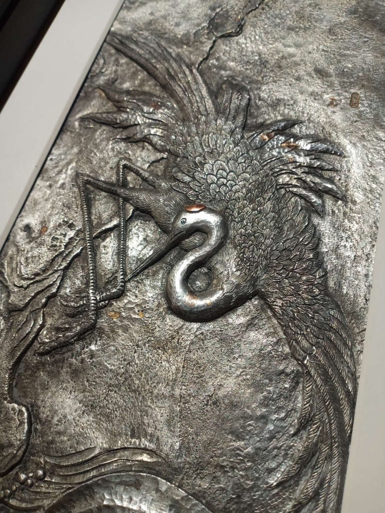 2020年,他以宋朝名画为蓝本,进行文人画的立体锻錾,借助陈容的《墨龙图》、米芾的《白鹤图》等作品,以刀锤代笔,纯手工打制,运用纯锡立体锻錾工艺,并借鉴了东阳木雕的表现手法,创作了《锻墨云龙》《上善若水》等一件件新作。