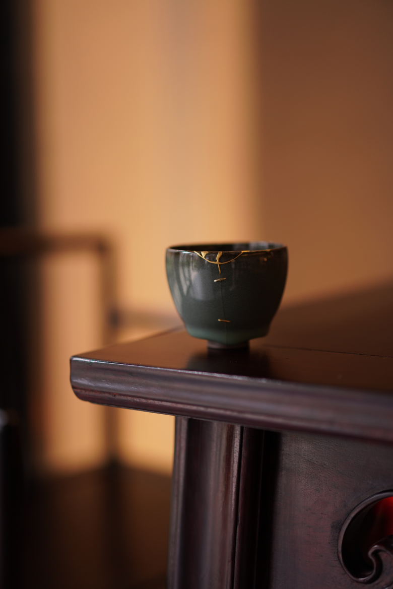 “我每天都要花10多个小时在工作室里,乐在其中。它不是简单的修修补补,而是考虑到茶器破损的情况,因人、因器进行再创作的过程。”他说,金缮修复一般短的几个月,长的一年半。