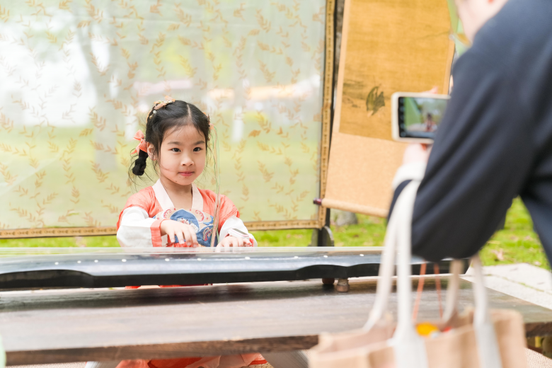 “以前的小朋友都很斯文,拍照不会比‘耶’。”杜安然是温州瓦市小学(育英校区)一年级的学生,身穿汉服的他在市集区不同的非遗手工摊位前拍照打卡。在妈妈的提醒下,他将刚伸出去的两根手指又偷偷地缩了回来,然后藏在身后。“平时孩子学习比较忙,放假就应该出来好好玩,刚才他还一个劲地说好玩、很有意思。其实,不只是他,我也觉得好玩,到这里可以拍各种照片,还能让孩子更好地了解温州的历史文化,可以说是一举多得。”