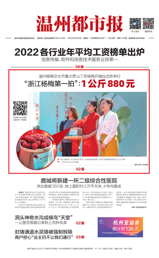 发布杨梅品质与安全监测报告、杨梅采摘游路线和杨梅精品园主题名单……5月9日上午,山水瓯越“梅”好生活,2023温州杨梅文化节暨大罗山丁岙杨梅开摘仪式在龙湾区状元街道举行。