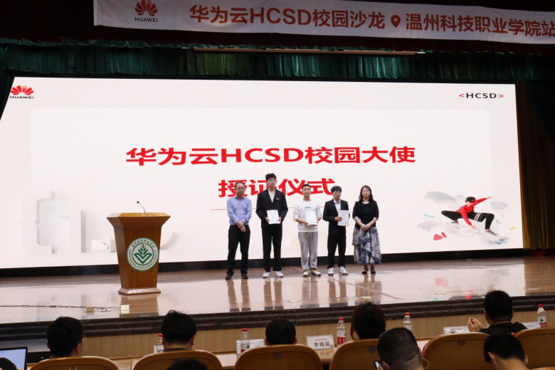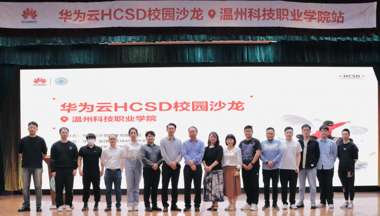5月10日下午,2023华为云“HCSD校园沙龙”在温州科技职业学院圆满举行。本次沙龙由华为云计算技术有限公司主办,华为(浙南)区块链创新中心承办,温州科技职业学院信息技术学院协办。华为云云学堂生态建设专家谭荣灿等企业专家,信息技术学院院长崔晓军、副院长何凤梅,计算机网络技术专业、人工智能技术应用专业、物联网应用技术专业360余名师生参加活动。