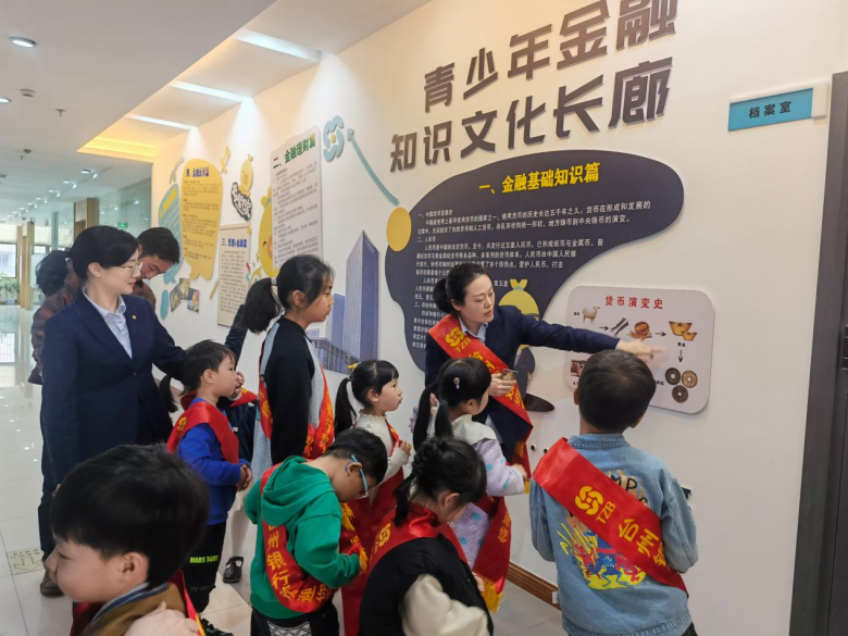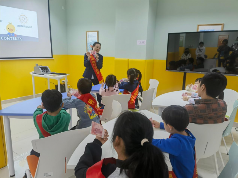 该行“小小银行家 成就大梦想”财商课堂主要内容为参观金融知识文化长廊:讲解货币演变史、反诈小提示、理财小技巧、诚信小知识、法律小常识等内容。识别假币、理财小课堂:通过简短有趣的动画视频,银行小姐姐现场讲解,教授识别假币技巧、加深理财意识、提升理财能力。体验银行业务办理流程:通过实地模拟,沉浸式体验银行业务办理,以寓教于乐的形式带领小朋友在快乐中学会理财,提升财商知识,引导树立正确的消费观和价值观,帮助增强风险防范意识。