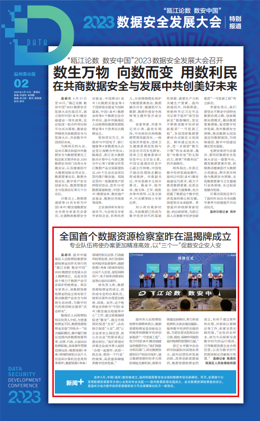去年5月,中国(温州)数安港成立,温州在探索安全合规的数据市场化新路径。同月,全国首个以受理数据资源案件为核心业务的专业法庭——温州数据资源法庭成立。此次数据资源检察室的设立,是温州为地方数字经济发展提供有力司法保障做出的又一新尝试。