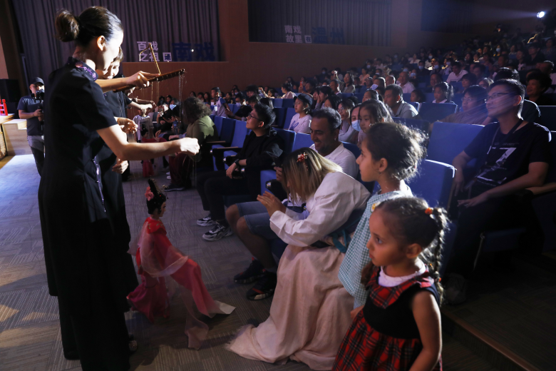平阳木偶传承保护中心演员与中外师生、观众互动