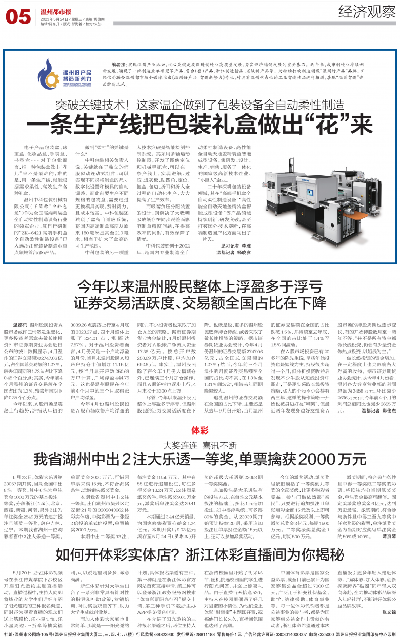 编者按:实现温州产业振兴,核心关键是要促进制造业高质量发展,夯实经济稳健发展的重要基石。近年来,我市制造业持续创新发展,涌现了一批制造业单项冠军产品、首台(套)产品、浙江制造精品、省级新产品等。为持续打响制造领域“温州好产品”品牌,市经信局联合温州都市报全媒体推出《温州好产品 智造新势力》专栏,对具有温州代表性的工业智造佳品进行报道,展现“温州智造”新面貌新风采。
