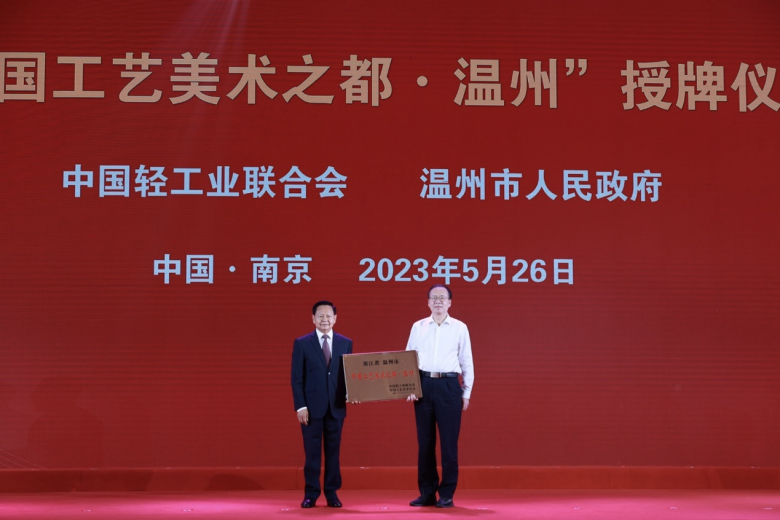 今年4月,中国轻工业联合会组织考评专家组对温州申报“中国工艺美术之都”进行实地考评。专家组认为:温州市政府重视工艺美术产业发展,产业历史悠久,产业规模较大,产品门类丰富,产业发展前景好,同意通过考评。5月15日,中国轻工业联合会和中国工艺美术学会发文,共同授予温州市“中国工艺美术之都”称号。
