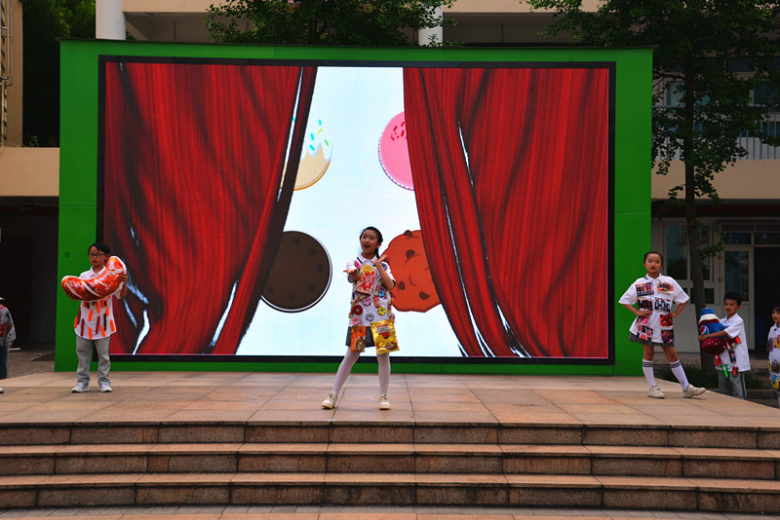 拿着手工制作的“炸鸡”,穿着“可乐”衣服…小演员们用俏皮的表情、活泼的动作与可爱的语言表达,赢得了全体师生阵阵掌声。惟妙惟肖的表演,将食品消费、食品安全带入日常生活中思考,引导学生们自觉选择健康食品,提高对食品安全的重视。