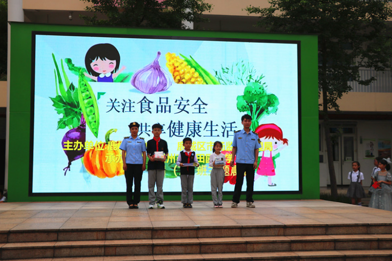 在情景剧表演后,学校对相关优秀作品进行表彰,动员学生们积极行动,小手牵大手,一起争做食品安全卫士,为国家食品安全示范城市创建贡献自己的力量。