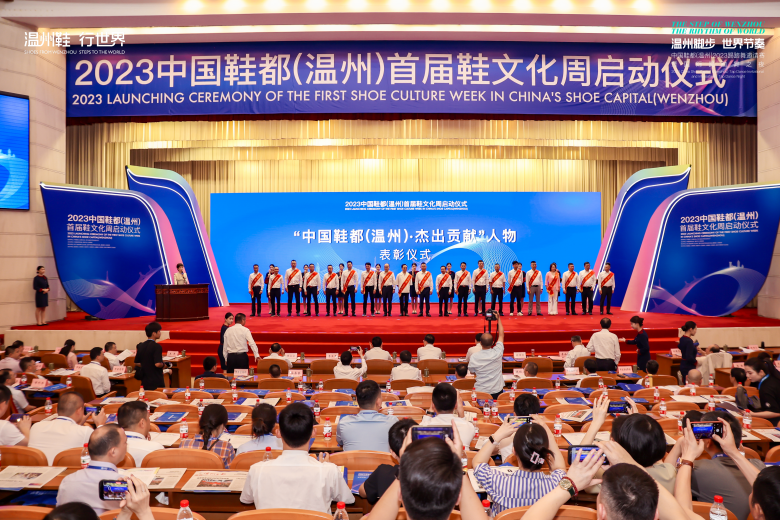 6月25日,2023中国鞋都(温州)首届鞋文化周启动仪式上,举行了“中国鞋都·杰出贡献”人物称号颁奖仪式,包括康奈集团董事长郑莱毅在内的20位企业家载誉而归,荣获“中国鞋都·杰出贡献”人物称号。