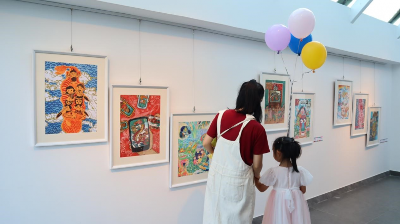 《亚运龙舟,与我同行》《迎亚运,赛龙舟》《共迎亚运》……展厅内,小艺术家们释放少儿天性,放飞想象,一幅幅绘画作品充满童趣、祝福满满、寓意深远,丰富多彩的作品吸引了众多市民参观。