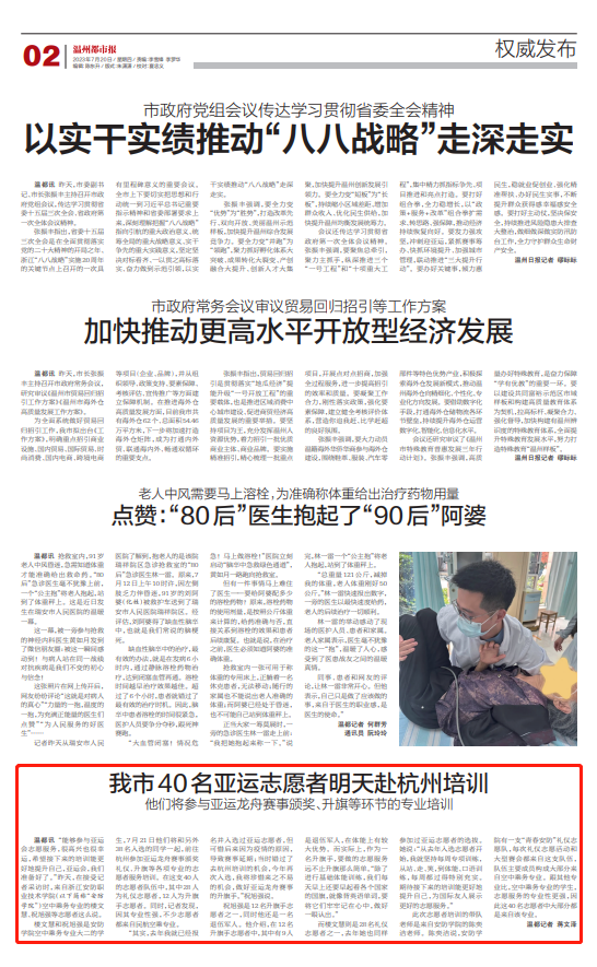 而楼文慧则是28名礼仪志愿者之一,去年她也同样参加过亚运志愿者的选拔。她说:“从去年入选志愿者开始,我就坚持每周专项训练,从站、走、笑,到体能、口语训练,每周都过得特别充实。期待接下来的培训能更好地提升自己,为国际友人展示更好的志愿服务。”