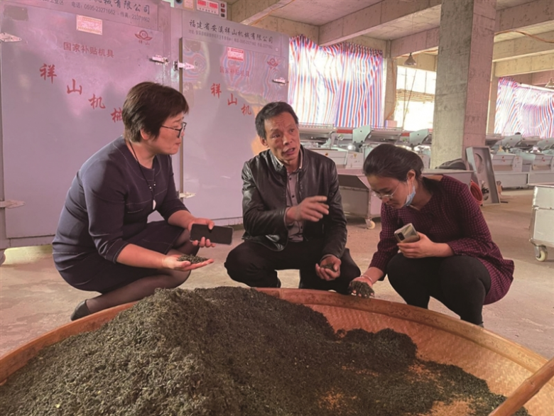 来到浙江泰龙制茶有限公司,企业负责人谢细和正通过手机参加省科技计划项目“26县高质量发展科技支撑”——泰顺现代茶产业绿色高质量发展关键技术研究与应用示范项目的课题讲解视频会议。