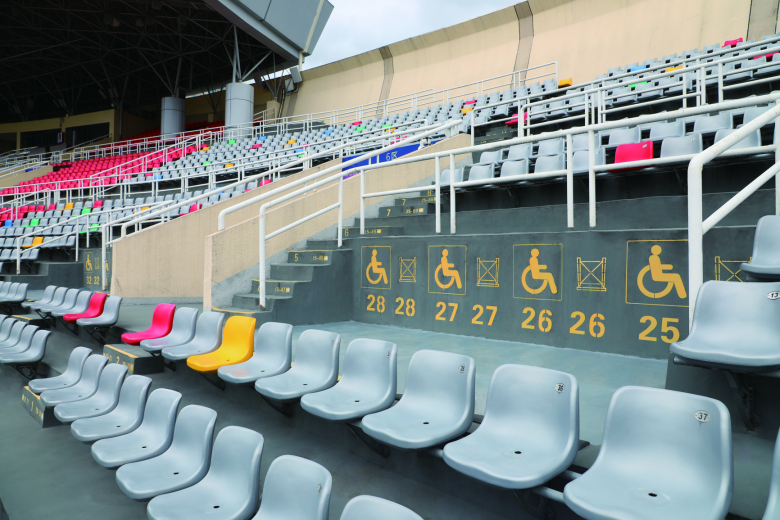 据介绍,体育场场馆一共可容纳1.5万人,并设置了32个无障碍坐席,无障碍人群可以通过升降平台进入观赛现场,同时,场馆中也设置了无障碍卫生间。