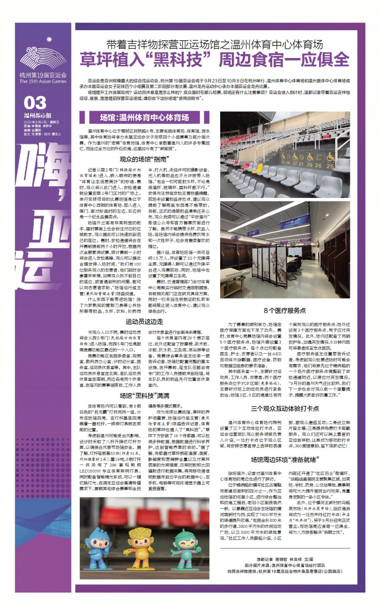 温州体育中心位于鹿城区民航路6号,主要包括体育场、体育馆、游泳馆等,其中体育场将承办本届亚运会女子足球四个小组赛事及部分淘汰赛。作为温州的“老牌”体育场馆,体育中心承载着温州人的许多专属回忆,而经过全方位的升级改造,这里如今有了“新面貌”。
