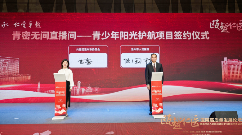 活动开幕式举行了院史馆开馆、精准医学中心启用和专病诊疗中心揭牌等仪式。站在过往和当下的交汇点上,医院将更加注重在铭记历史的基础上砥砺前行、精进不辍,以实际行动促进学科建设。此外,现场还顺利完成了“未来医院”“青密无间直播间-青少年阳光护航项目”及温州市人民医院与瓯江实验室战略合作的签约仪式,多个品牌与项目将推动医院朝着现代化、科技化与数智化的方向持续发展。