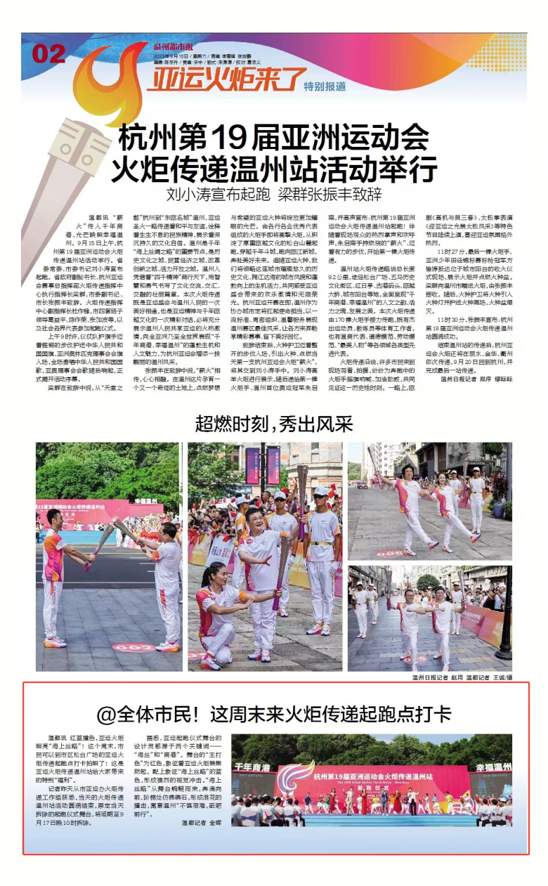 红蓝撞色,亚运火炬照亮“海上丝路”!这个周末,市民可以到市区松台广场的亚运火炬传递起跑点打卡拍照了!这是亚运火炬传递温州站给大家带来的特别“福利”。