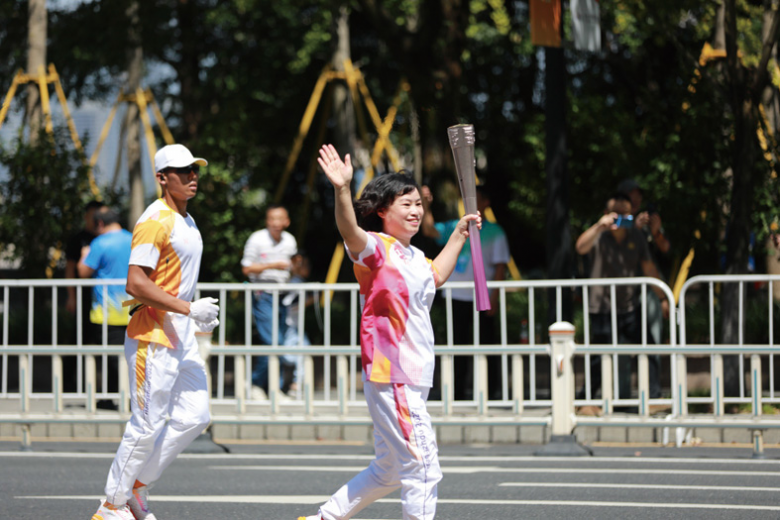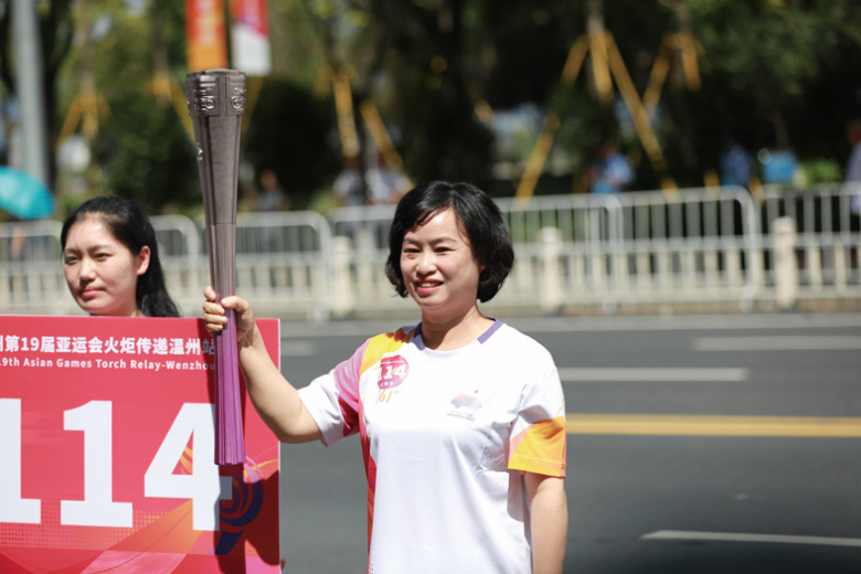 9月15日上午,杭州第19届亚运会火炬传递温州站活动举行,170名火炬手手持“薪火”,传递荣光。作为本站的火炬手之一,中国建设银行温州分行私人银行经营部副总经理、全国劳模、“最美建行人”、“春媚工作室”领衔人张春媚,在第114棒完成神圣的接力传递。