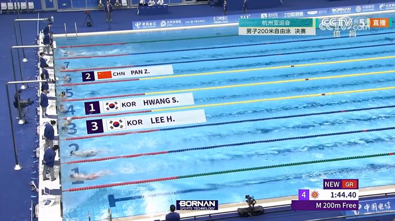 9月27日,杭州亚运会男子200米自由泳决赛,来自温州的潘展乐以1分45秒28获得银牌,另一位中国选手洪金权第5。
