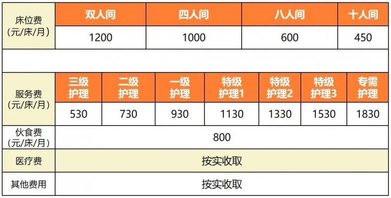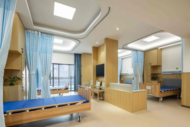 养老院设有老人自理区、介助区、护理区和认知障碍照护专区。老人居室分为二人、四人、多人间不同户型,均配有中央空调、新风系统、呼叫系统、定位系统,护理型房间还配有中心供氧系统。