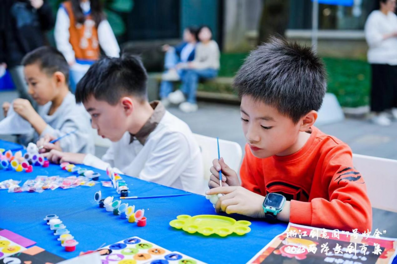 来自浙江工贸职业技术学院的石膏娃娃摊位吸引了众多学生和市民的围观体验,浙工贸国际商贸学院大一学生小邓说,制作石膏娃娃过程可以激发创新力和创造力,是一种很有意义的体验。