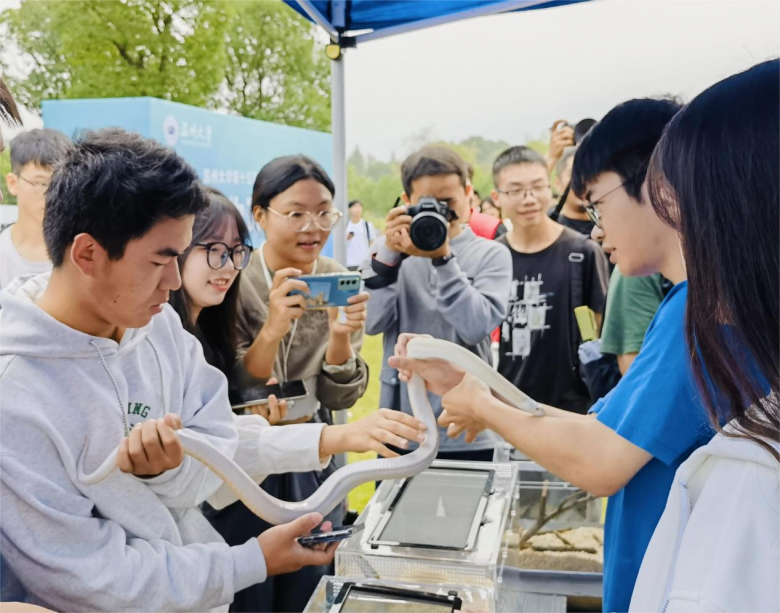 “这次活动真的很新奇,我是生态专业的同学,看到大家对两爬动物这么感兴趣,我对本专业的自豪感更强了!在这里我还体验了其他专业的摊位,也都很有趣,希望之后学院多多举办这样的活动!”一名现场同学激动地说道。