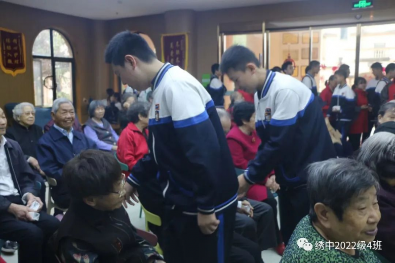 我发现在给爷爷奶奶表演才艺时,他们对于我们的表演都充满热情。当我给一位奶奶送牛奶时,奶奶脸上止不住的笑容更让我体会到以后要多关爱老年人,特别是自自己的亲人。在听一位老爷爷讲述自己的抗美援朝故事时,我虽然不听不懂爷爷讲的一些词,但我听到了爷爷说“以前的战争多么残酷。现在新中国成立了,国家发达了,你们这些青年人……新中国的成立对于每个中国人来说都是骄傲的。”所以我更加入体悟到要珍惜当下美好生活!虽说生活在一个战争已经减少的时代,但那是先辈们为我们用血打造出的现世安稳,我们要好好珍惜,吾辈要自强!