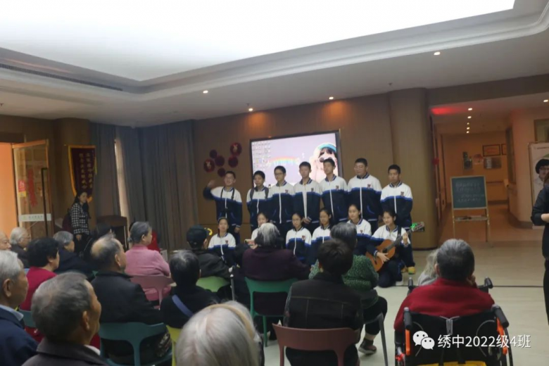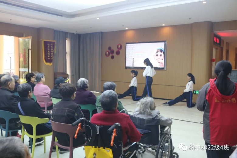 今天我第一次到养老院。这里的老人基本都80岁以上了,女性居多。看到我们的到来,苍老的面庞上都洋溢起开心幸福的笑容。我想他们平时应该是非常的孤独,生活单调而无聊。也许是子女无法亲自照顾他们,或者就根本没有子女,随着老伴的离世,只能来到这里。他们想见到孩子们天真烂漫的笑脸,想要有孩子们陪伴的幸福。我们仅仅是表演了几个节目,他们很多人听不懂普通话而看不懂节目,却依然开心异常!他们很多人腰腿不好,行动吃力,需要别人的照顾。还好,他们在这里得到的照顾还是很精心的。我想照顾老人不应该仅仅是身体上的 ,应该是精神上的。多一些陪伴和热情,可能是他们更为需要的。我希望通过一次次的社会活动,把青春的美好带给更多需要的人!
