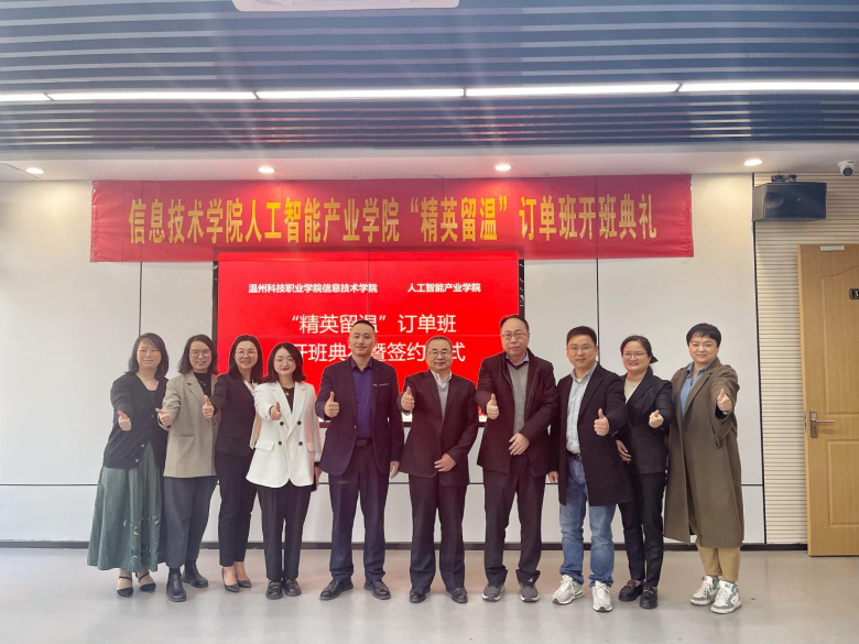 近年来,人工智能产业学院力争全力打通高校和企业之间的信息交流与沟通合作壁垒,定向培养一批与企业高度匹配的技术型能手,持续开设产教融合订单班,以‘职场+学场’双场融合协同模式,将企业文化与实际项目融入课堂,集聚资源、创新机制、纵深推进产教融合,加强高质量留温就业示范圈建设。在今年秋招双选会开始前,学院已有22位学生通过订单班培养模式成功进入相关企业实习,实现了教学实践与实习就业的无缝对接,复合型人才培养与就业岗位需求的零距离、精准化衔接。