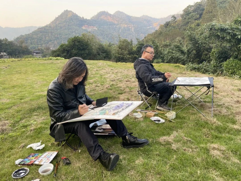 画家们先后造访了平阳县南雁村、永嘉县桅峰村及苍坡村,积累了自然风光、人文景观、民俗风情等丰富的创作素材,激发了创作灵感。来自不同画院的画家们齐聚一堂,以画会友、以美养心,畅谈创作心得,切磋绘画创作技能。他们用个人独特的艺术视角、不同的艺术语言,描绘出一幅幅展现温州秀美风光与风土人情的动人画卷。