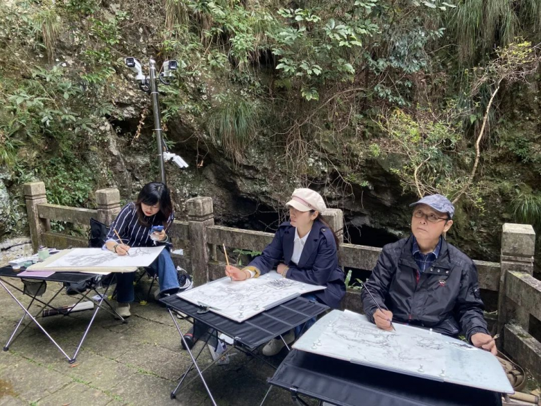 温都讯 泛舟溪流,攀山越溪,纵情山水……日前,温州书画院联合浙江画院、郑州画院共同组织各画院画师走进温州地区浙江省美育示范村,开展为期5日的美丽乡村——名家写生实践活动。这是温州书画院“美丽乡村”品牌多年来首次开展三院联动,深入美育场景现场,体验“半村烟火半村丹青”的乡村艺韵。