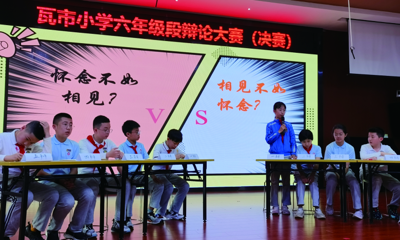 瓦市小学副校长林晓介绍,瓦小儿童哲学是全景浸润式的,它一点一滴地融入校园生活中。校园里有哲思诗词长廊、哲思吧、哲学时光长廊、哲思留言板等等,每月有哲思班会、晨会,每年11月的第三周举行哲学周活动,今年的主题就是“玩转不一样的儿童哲学”,哲思60秒秀、不破不立哲思游戏、哲学马拉松等哲学活动。