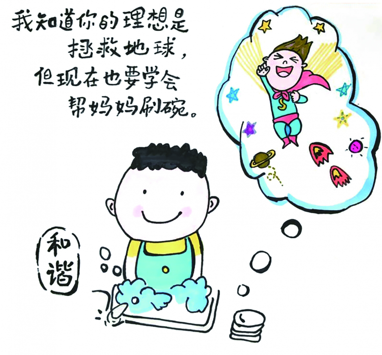 五(8)班的叶祥雨家长认为,家庭的交谈氛围对孩子的智性成长至关重要,平时她比较注重为孩子创造哲学问题情境,抓住生活中的教育契机。如孩子早餐吃鸡蛋时,她会和孩子交流:“小孩不喜欢吃蛋黄,不吃可以吗?不喜欢的事可以不做吗?喜欢和应该,哪个放第一位?”儿童是天生的哲学家,他们的思维中有着很多天马行空的奇思妙想。最重要的是,家长需要有耐心和开放的态度,让孩子感到他们的观点被尊重,他们的思考被鼓励。