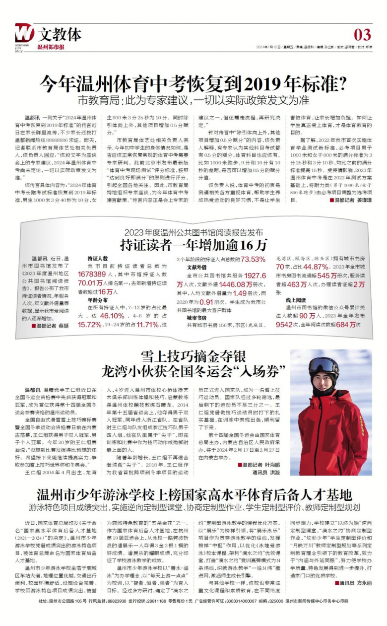 近日,国家体育总局印发《关于命名“国家高水平体育后备人才基地(2021—2024)”的决定》,温州市少年游泳学校凭借游泳特色项目成绩突出,被体育总局命名为国家体育后备人才基地。