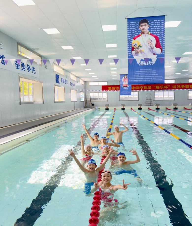 学校因游泳特色项目成绩突出,被誉为鹿城特色教育的“五朵金花”之一。作为国家体育后备人才基地,在刚刚结束的2023年杭州亚运会上,从泳校一路劈波斩浪的潘展乐一人夺得3金3银1铜的好成绩。潘展乐的耀眼成绩,充分印证了学校游泳教学的成效。
