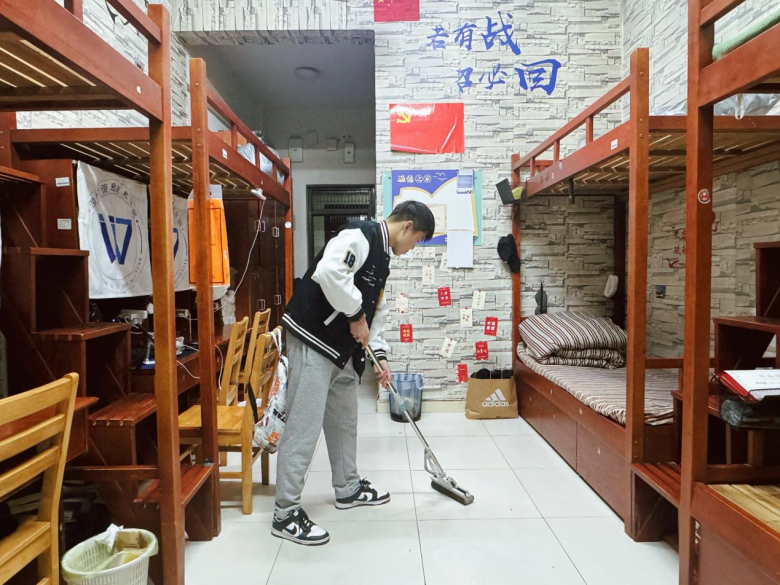 此外,提早回校的同学们早早将寝室打扫干净,以整洁的环境迎接室友们的归来。学校党委书记蔡联群一行走访学生寝室,为同学们送上了“大吉大利、红红火火”开学暖心包,并与学生们亲切交谈,勉励大家珍惜时光,多读书、常运动、勤思考,在新学期取得更大进步。这一系列举措展示了学院的人文关怀,也促进了师生及同学之间的交流和融合。