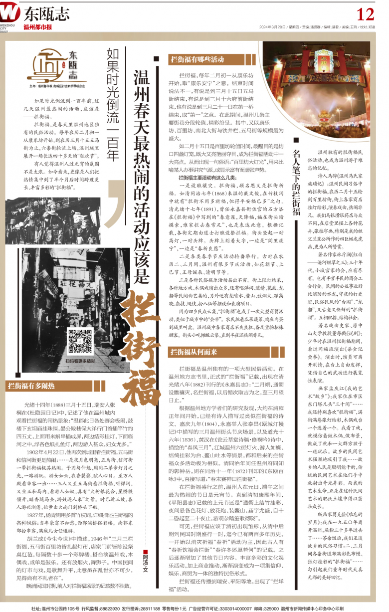 如果时光倒流到一百年前,这几天温州最热闹的活动,应该是——拦街福。