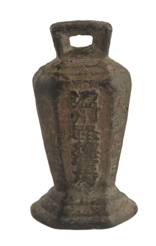 千百年来,权是各朝征收赋税、称量财物,支付黄金及铸造钱币等必需之物。温州博物馆还藏有一枚延祐六年(1319)铸造的铜权,高83厘米,底径46厘米,重300克。铜权正面铸有“温州路总管府”、左面“提调正官”,右面铸“校勘”,背面有“延祐六年造”,均为汉字,属温州路官方标准衡器。