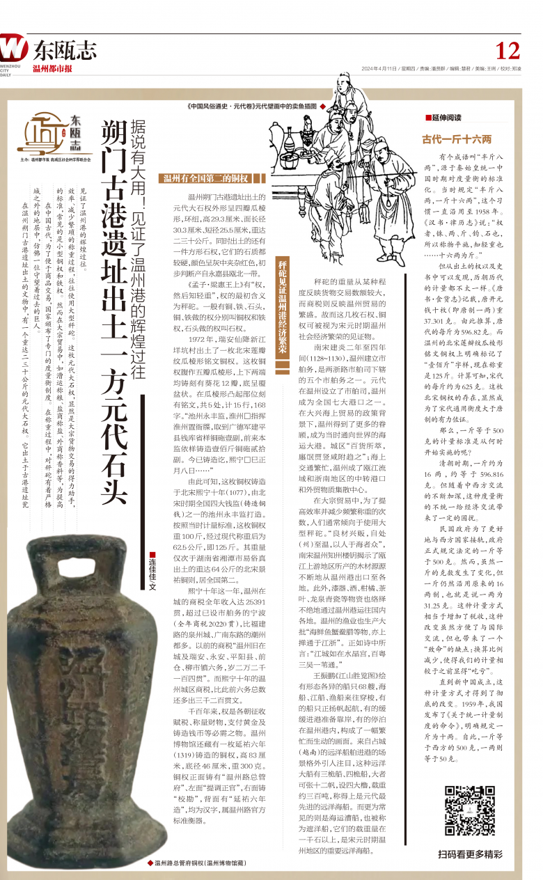 秤砣的重量从某种程度反映货物交易数额较大,而商税则反映温州贸易的繁盛。故而这几枚石权、铜权可被视为宋元时期温州社会经济繁荣的见证物。