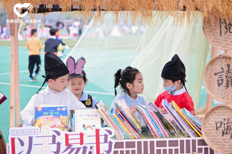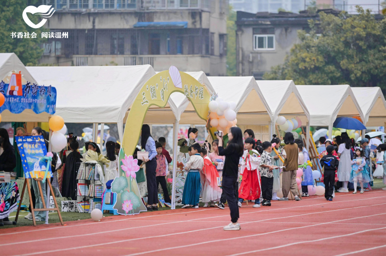 温州市籀园小学举行了“阅读嗨玩节”,一个个创意十足的摊位不断吸引“顾客”们驻足观看,许多学生打扮成书中喜爱角色的模样,穿越在浓浓书香校园,感受精彩纷呈的阅读盛宴。