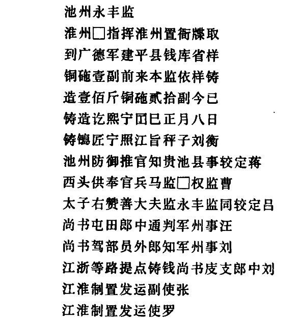 由此可知,这枚铜权铸造于北宋熙宁十年(1077),由北宋时期全国四大钱监(铸造铜钱)之一的池州永丰监打造。按照当时计量标准,这枚铜权重100斤,经过现代称重后为62.5公斤,即125斤。其重量仅次于湖南省湘潭市易俗真出土的重达64公斤的北宋景祐铜则,居全国第二。
