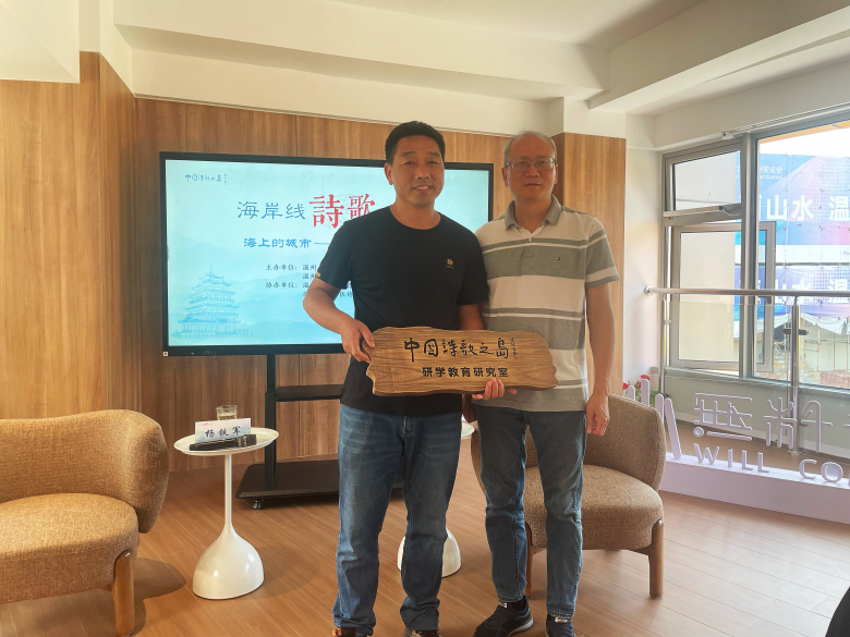 沙龙活动开始前,洞头区文联主席林慷慨、北岙街道党工委委员朱曾奎分别给钱文亮教授和杨铁军老师授予中国诗歌之岛“文艺岛民”纪念卡。活动现场,还就中国诗歌之岛“研学教育研究室”举行了揭牌仪式,旨在推动本地区海洋童诗研学活动品牌化。