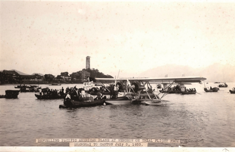 1933年7月,沪粤航线试飞,经停温州,在江心屿瓯江江面加油。